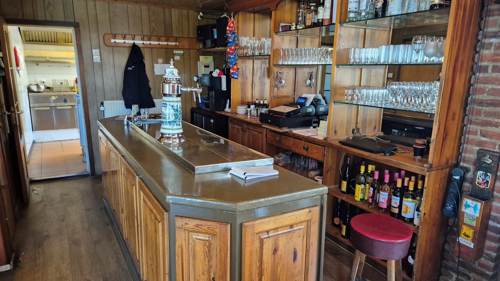 Volledig authetiek cafe met bar en keuken.